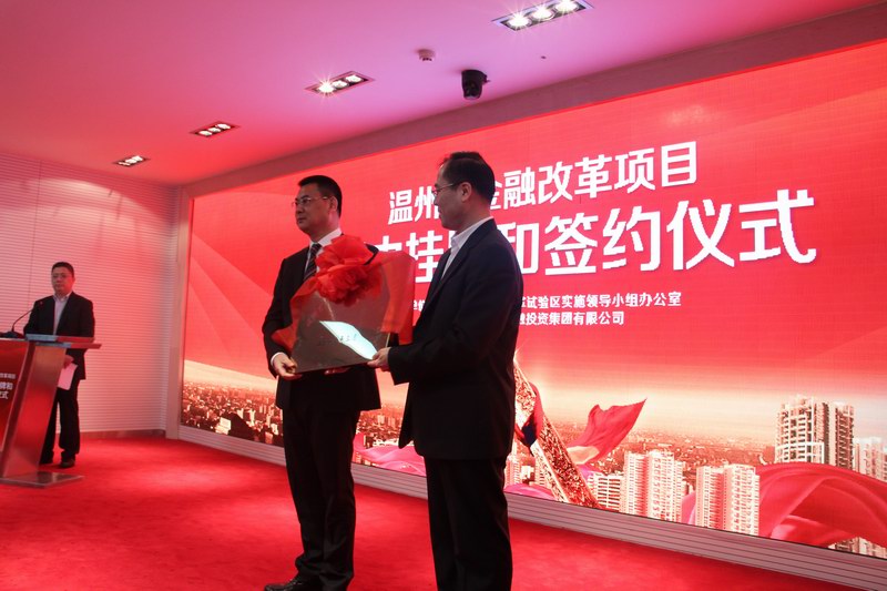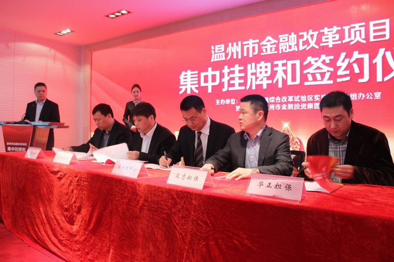 ??????? 3月28日,溫州市金融綜合改革試驗(yàn)區(qū)迎來(lái)一周年。當(dāng)天上午,在溫州金融改革廣場(chǎng)二樓,舉行了一批全新的金改項(xiàng)目集中掛牌和簽約儀式,包括小微企業(yè)融資再擔(dān)保中心、商業(yè)保理公司、中小企業(yè)票據(jù)服務(wù)公司等。據(jù)有關(guān)負(fù)責(zé)人介紹,此次金改周年之際成立的這幾個(gè)新機(jī)構(gòu),全都是面向中小微企業(yè),為其提供多層次的金融服務(wù),緩解企業(yè)資金周轉(zhuǎn)困難,促進(jìn)溫州經(jīng)濟(jì)平穩(wěn)健康發(fā)展。