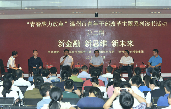 青年人眼中的金改是什么樣的?金改在哪些方面取得了突破?近日,溫州市金融投資集團(tuán)有限公司聯(lián)合溫州團(tuán)市委、溫州市直機(jī)關(guān)工委共同舉行“新金融·新思維·新未來”論壇,80余名市直機(jī)關(guān)、企事業(yè)單位團(tuán)委系統(tǒng)青年團(tuán)干部齊聚溫州市金融改革廣場,來自市金融辦、人民銀行溫州市中心支行、恒豐銀行溫州分行單位相關(guān)負(fù)責(zé)人分別作主旨演講,并現(xiàn)場回答大家提問。