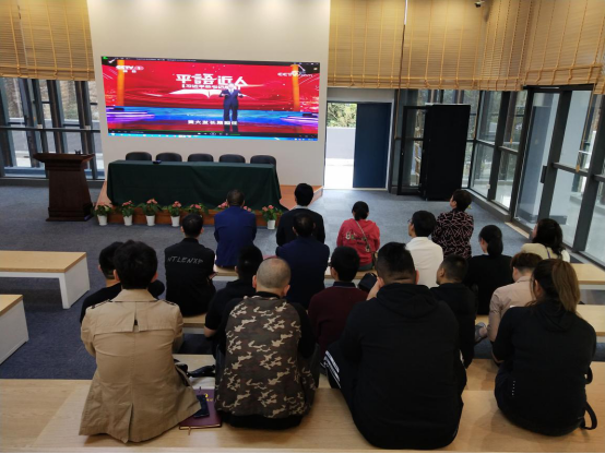展覽結(jié)束后,一行人在道德館二樓會議室觀看視頻《平”語“近人——習(xí)近平總書記用典》第三集:國無德不興。