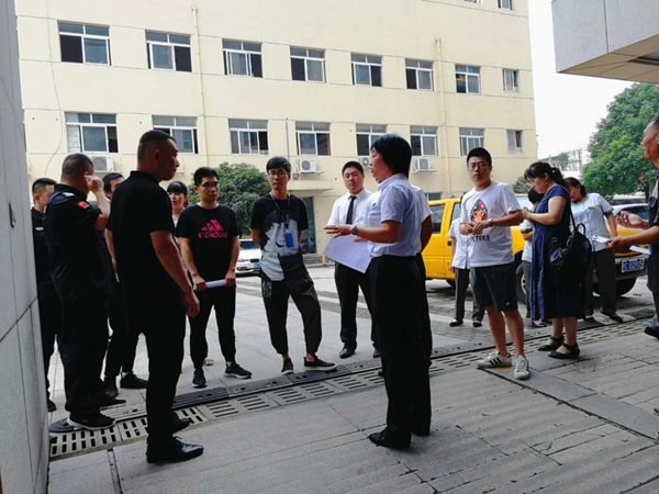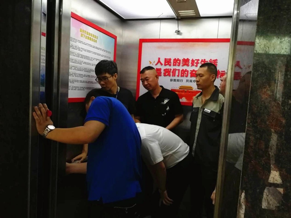 ??? 此次應急救援預案演練模擬在金投商務樓,模擬一部電梯突發(fā)故障,有兩名乘客被困,被困乘客用電梯內(nèi)的緊急呼叫裝置求救。大樓消控室接到求救信號后,值班人員迅速啟動應急救援預案,并對被困人員進行心理安撫和情緒疏導,及時了解電梯內(nèi)的相關情況。