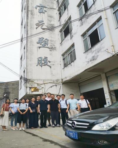隨后,“金融服務團”來到溫州中電寶元新材料科技有限公司(以下簡稱“中電寶元”)。公司負責人帶領“金融服務團”參觀了生產車間,并介紹了公司基本情況、新廠區(qū)規(guī)劃、未來業(yè)務展望?!爸须妼氃鼻吧頌闉闇刂輰氃茨ζ鞑呐浼邢薰?,與國內多家按摩椅十大品牌公司都有著長期業(yè)務合作,主營高科技、高質量按摩器材配件,如按摩氣囊、布料等。經(jīng)過十多年的行業(yè)摸索和沉淀,未來“中電寶元”將進行轉型升級,自主研發(fā)和生產新材料,把TPU材料應用到更多領域,拓寬公司業(yè)務。