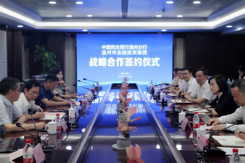 9月9日下午,溫州金投集團與民生銀行溫州分行在金融大廈舉行全面戰(zhàn)略合作協(xié)議簽約儀式。溫州金投集團董事長邱海華、副總經(jīng)理胡仕漢、總會計師王秀福,民生銀行溫州分行行長何青、行長助理韓曉東等出席簽約儀式。