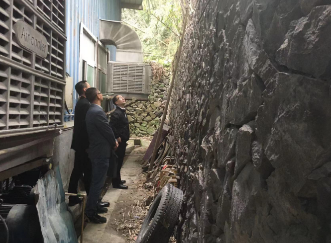 葉剛一行到平陽公司廠區(qū)查看地質(zhì)災害監(jiān)測點邊坡防治情況,指出廠房車間必須與邊坡保持適當?shù)木嚯x,防范滑坡安全風險。檢查組還特別關注廠區(qū)龍門架、電瓶車充電點等處的安全情況,叮囑做好防范工作。