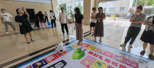 講座結(jié)束后,在公司大廳設(shè)置了“垃圾分類單人飛行棋”、“垃圾分類雙人pk賽”、“節(jié)能降碳知識(shí)競(jìng)答”、“趣味競(jìng)走垃圾分類”四個(gè)游戲打卡點(diǎn),通過(guò)趣味游戲普及日常垃圾分類知識(shí),倡導(dǎo)綠色環(huán)保理念。大家在游戲互動(dòng)交流,學(xué)習(xí)垃圾分類知識(shí),寓教于樂(lè)。