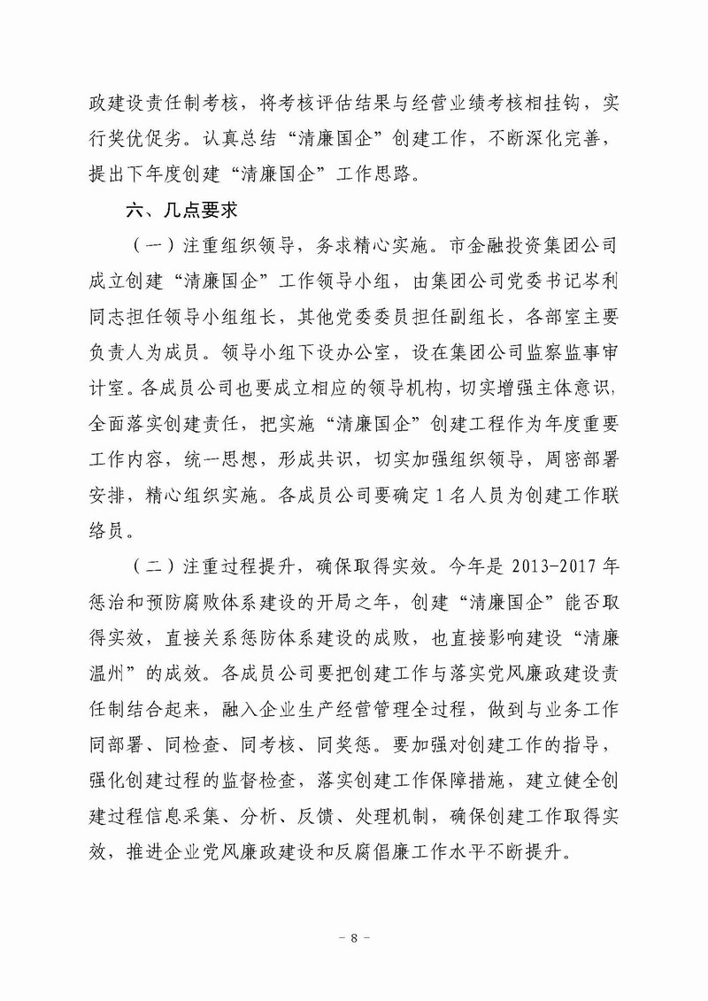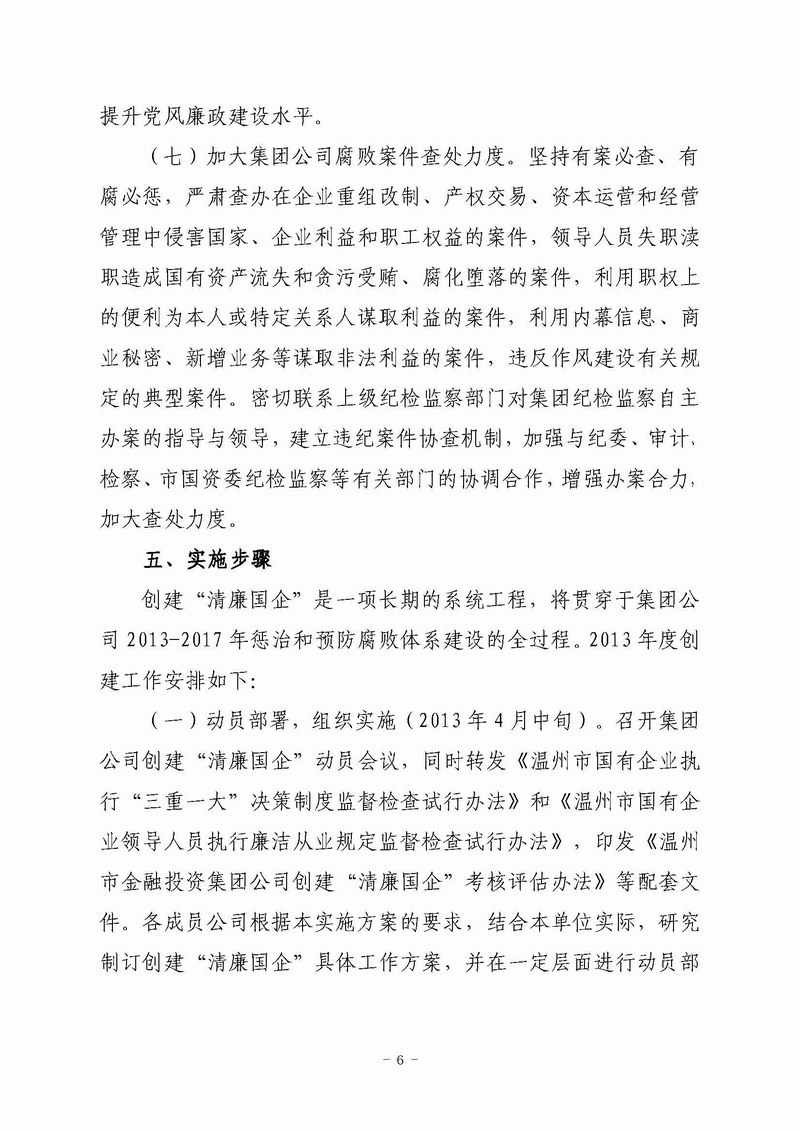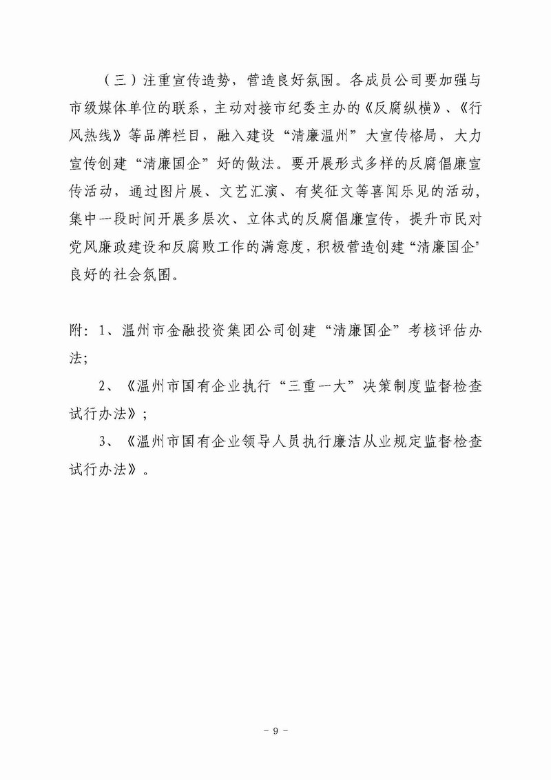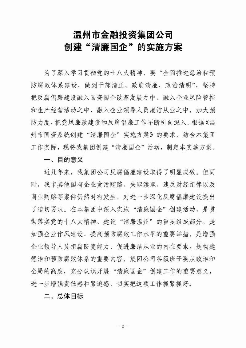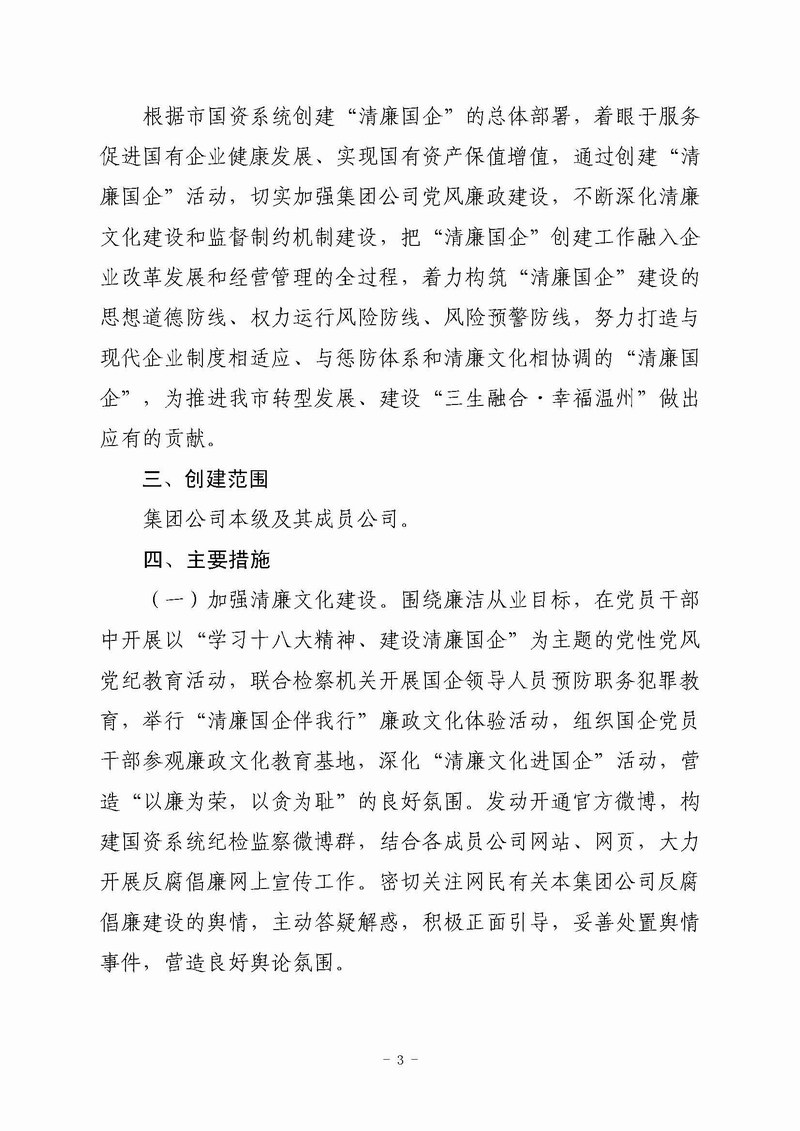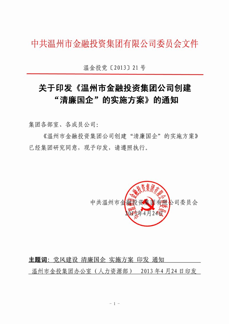 關(guān)于印發(fā)《溫州市金融投資集團公司創(chuàng)建“清廉國企”的實施方案》的通知(溫金投黨〔2013〕21 號)