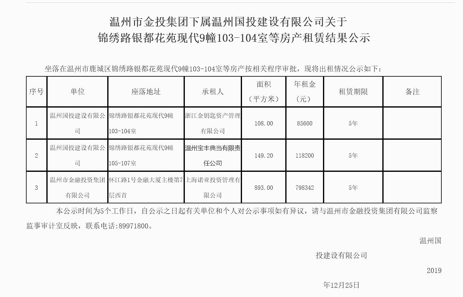 溫州市金投集團下屬溫州國投建設有限公司關于錦繡路銀都花苑現(xiàn)代9幢103