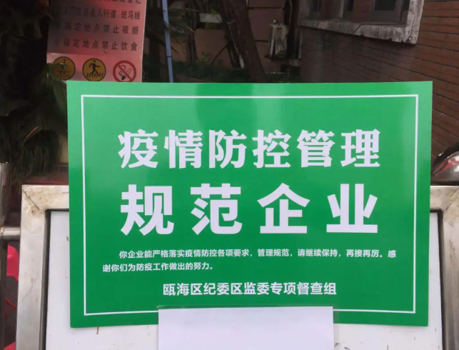 該公司作為甌海區(qū)白名單第一家復(fù)工復(fù)產(chǎn)企業(yè),嚴(yán)格落實(shí)屬地政府復(fù)工防控方案,通過(guò)建立入廠防疫檢查制度、廠區(qū)消殺制度、員工宿舍及食堂防疫管控制度等,經(jīng)甌海區(qū)紀(jì)委檢查合格后,被評(píng)為“疫情防控管理規(guī)范企業(yè)”稱(chēng)號(hào)。