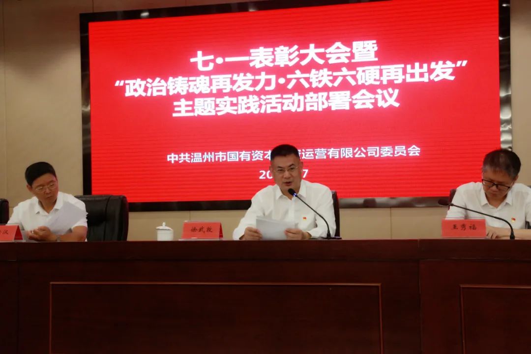 7月1日上午,市國(guó)投公司召開(kāi)“七一”表彰大會(huì)暨“政治鑄魂再發(fā)力·六鐵六硬再出發(fā)”主題實(shí)踐活動(dòng)部署會(huì),不斷推動(dòng)變革型組織建設(shè),塑造黨員干部變革重塑能力,全面鍛造一支有著鐵一般紀(jì)律、鋼一般意志的“國(guó)投鐵軍”。公司黨委書記、董事長(zhǎng)徐武敦出席上專題黨課并作重要講話,會(huì)議由公司黨委委員、紀(jì)委書記韓包強(qiáng)主持。公司黨委班子成員、副科級(jí)以上干部、所屬各基層黨組織書記、委員、“兩優(yōu)一先”代表、疫情防控事跡突出個(gè)人等參會(huì)。