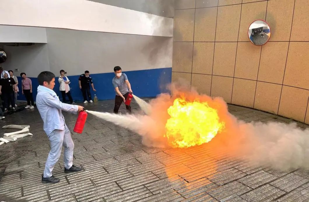培訓(xùn)結(jié)束后,還舉辦了消防安全模擬演練,隨著一陣警報(bào)聲響起,在各部門負(fù)責(zé)人的指揮下,大家用毛巾遮擋口鼻,低頭彎腰沿著安全通道冒著濃煙,疏散到一樓安全地帶。緊接著進(jìn)行人員急救和滅火等操作。