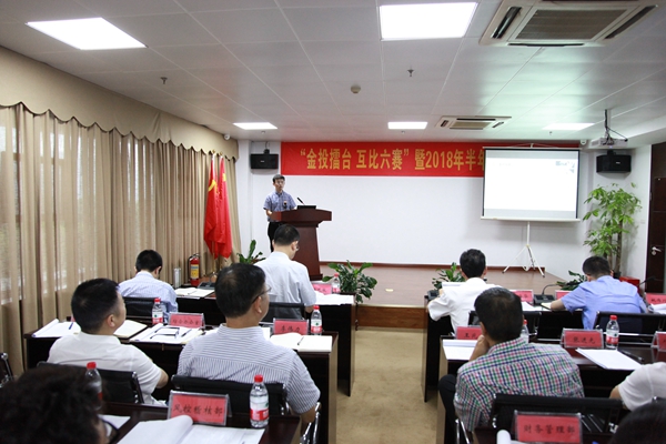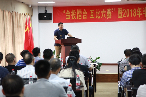 ?? 溫州網(wǎng)訊8月23日下午,溫州金投集團(tuán)舉行“金投擂臺(tái)·互比六賽”活動(dòng)。金投集團(tuán)旗下金投擔(dān)保、產(chǎn)業(yè)基金、聯(lián)合產(chǎn)權(quán)交易中心、財(cái)開(kāi)公司、國(guó)投建設(shè)及制造類(lèi)企業(yè)在現(xiàn)場(chǎng)匯報(bào)半年來(lái)業(yè)績(jī),按照“賽項(xiàng)目、賽進(jìn)度、賽落實(shí)、賽創(chuàng)新、賽質(zhì)量、賽擔(dān)當(dāng)”的六賽要求,“曬”出半年度成績(jī),并由集團(tuán)分管領(lǐng)導(dǎo)予以點(diǎn)評(píng),最后由現(xiàn)場(chǎng)參會(huì)的60余名集團(tuán)及成員公司中層以上干部打出考核分?jǐn)?shù)。